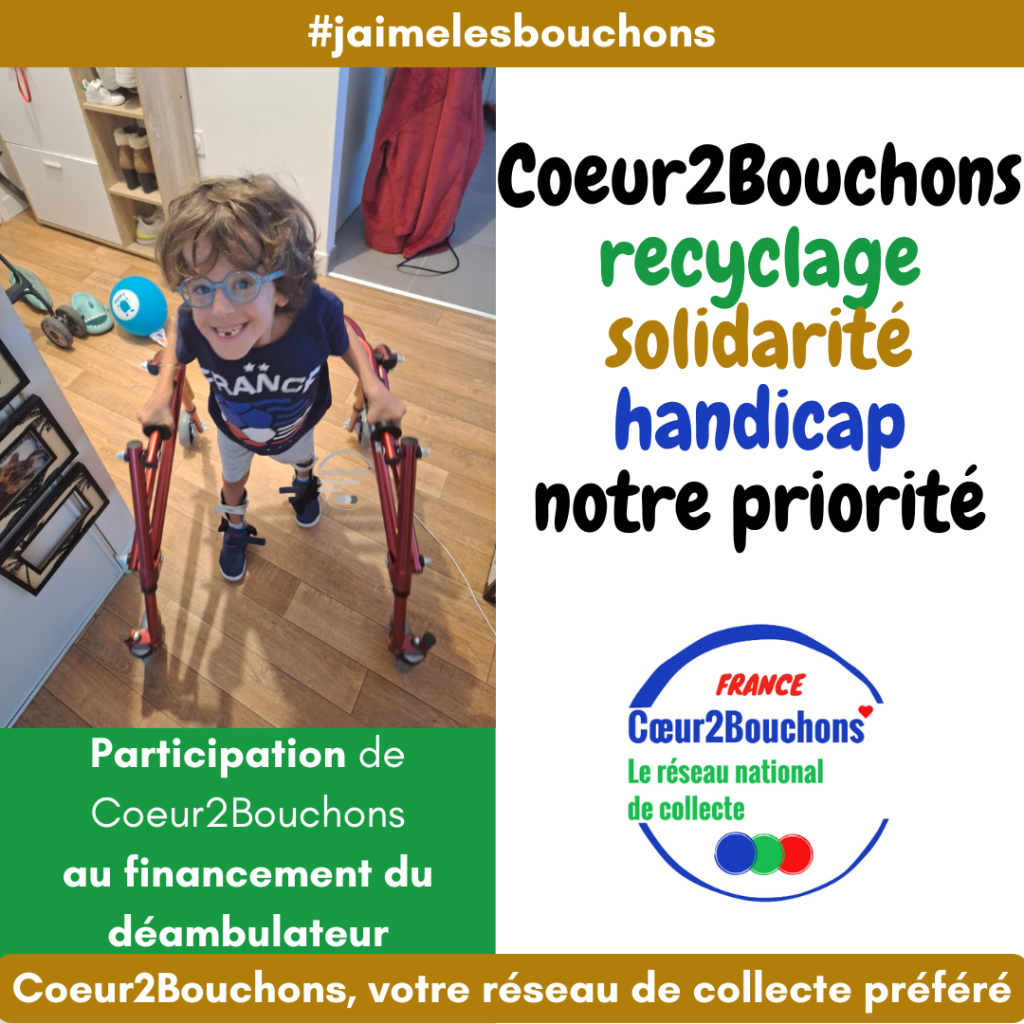 « Coeur2Bouchons est un réseau de collecte qui reverse l’intégralité de l’argent issu de la vente des bouchons en plastique dans l’achat de matériel en faveur des personnes en situation de handicap (quel que soit le handicap !)